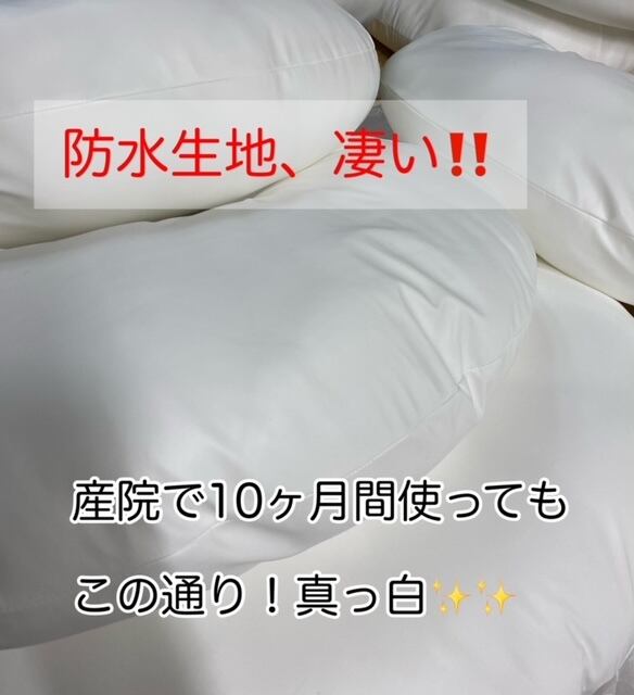 実際に、入院患者の多い産院で10カ月間使用してもらっているヌードクッションは、購入時と変わらないほど真っ白でした!